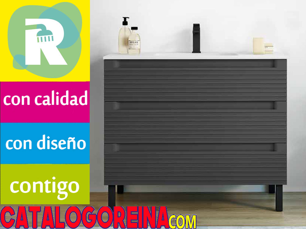 . Muebles de baño modernos con patas FREVO Basalto 3 cajones